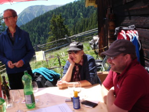 Die Spitzenläufer nutzten ihren Vorsprung netterweise, um sich kurz zu stärken und dann die Gruppe der gemütlichen Wanderer musikalisch zu empfangen.