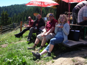 Die Instrumente wurden vom Wirt mit seinem Auto transportiert. Wir machten uns zu Fuss auf den Weg. Unseren trainierten Läufern war das angeschlagene Tempo zu gemächlich, sie zogen bald einmal davon und wurden erst am Ziel wieder gesichtet.