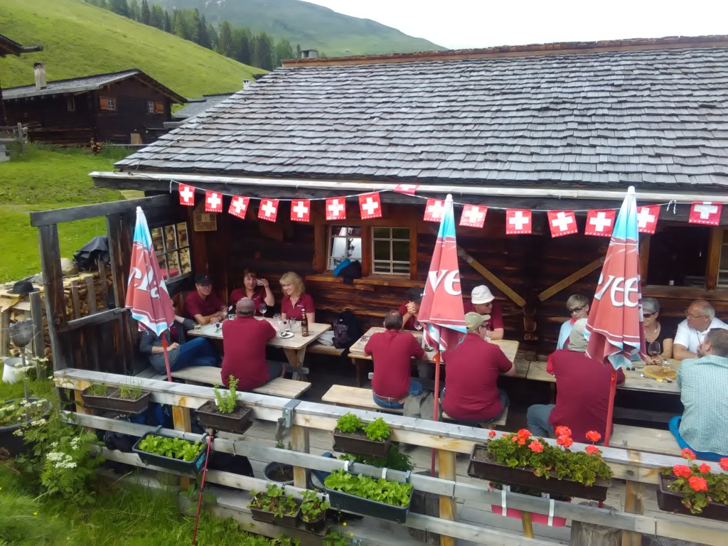Nach 15.30 Uhr packten wir unsere Instrumente und Noten wieder in das Auto der Wirtsleute, um für deren Rücktransport nach Davos gerüstet zu sein. Wir verweilten gemütlich auf der Terrasse bei Wein und tollen Zvieri-Plättlis und unterhielten uns untereinander und mit den Gästen.