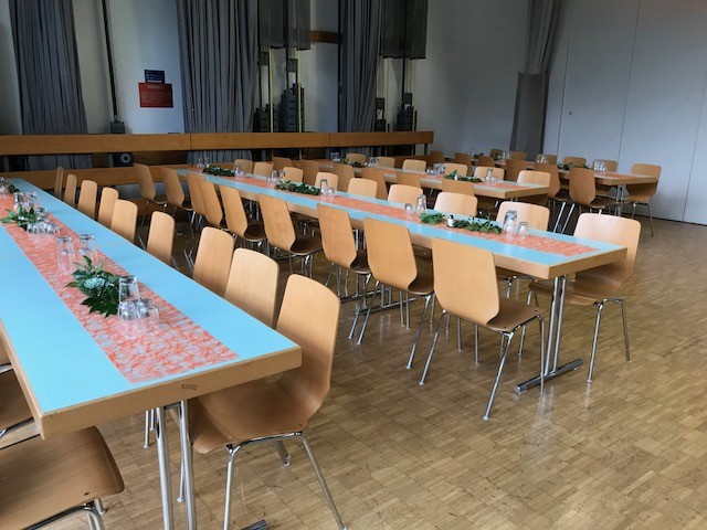 Das eingespielte Team der MGO richtete am Vormittag die Räumlichkeit für diesen Anlass her. Tische und Stühle wurden gestellt, das Geschirr, die Getränke und die von den MusikantInnen gebackenen Kuchen und Torten bereitgestellt und die Sandwiches zubereitet. Monika verschönerte wie gewohnt die Tische mit ihrer liebevoll gestalteten Dekoration.