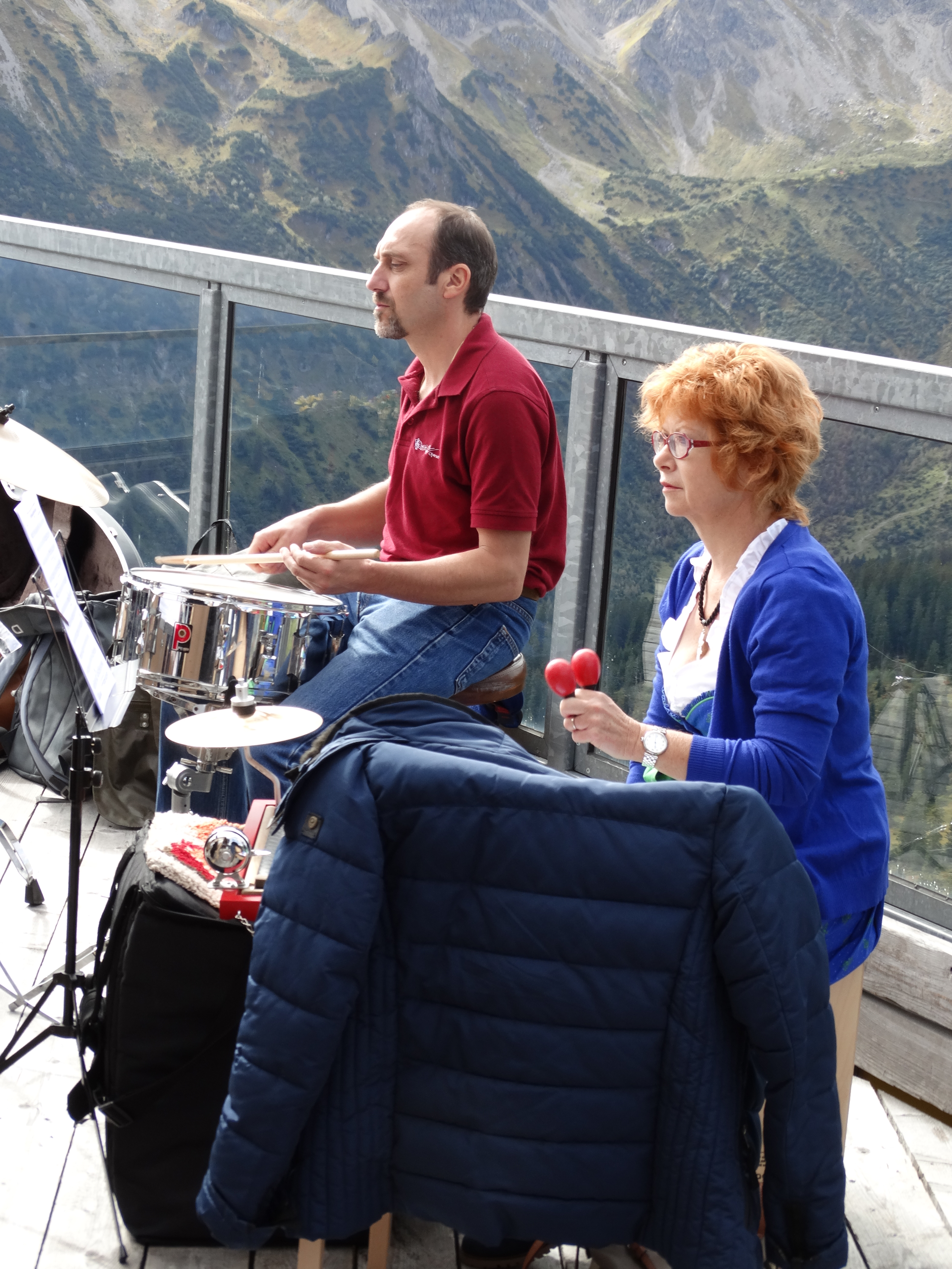 Erfreulicherweise spielte auch das Wetter mit, sodass wir den ersten Block unseres Konzertes auf der Terrasse im Freien mit wunderschöner Bergkulisse abhalten durften.