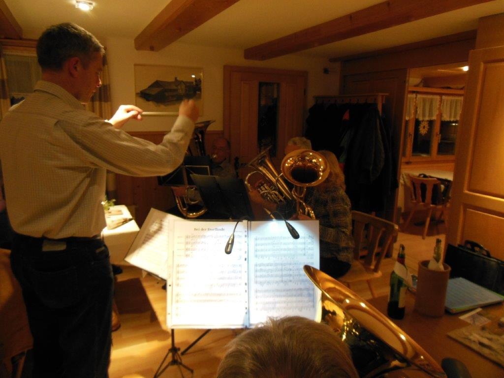 Wieder haben wir gespielt, was das Notenmaterial hergab. Nebst vielen einfachen, gehörfälligen Stücken wagten wir uns selbst an anspruchsvolle Werke wie die Feuerwerksmusik von Händel und die Bohemian Rhapsody von Queen. Natürlich durften an diesem Ort ein paar Weisen und Stücke wie „s’Chilchli“ nicht fehlen. Auch wenn der eine oder andere Ton einmal daneben ging oder auch einmal eine Spiellücke entstand, hatten wir viel Spass und waren der Meinung, dass wir schön gespielt hätten.