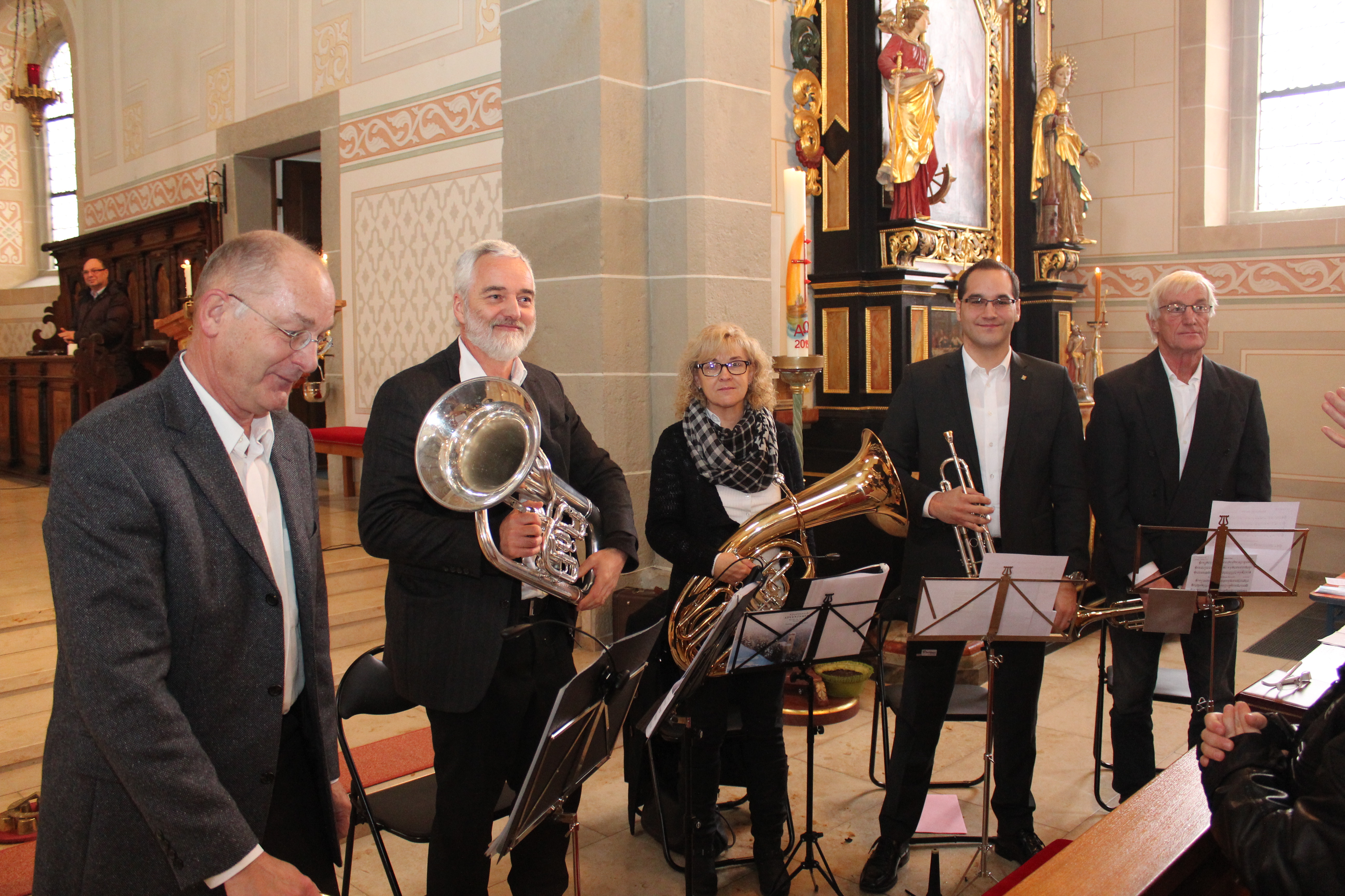 Wir durften am Schluss lang anhaltenden Beifall und viele Komplimente entgegen nehmen. Das hat uns natürlich sehr gefreut. Es ist uns eine grosse Freude, dass wir an diesem sehr feierlich und schön gestalteten Gottesdienst in voll besetzter Kirche teilnehmen durften.