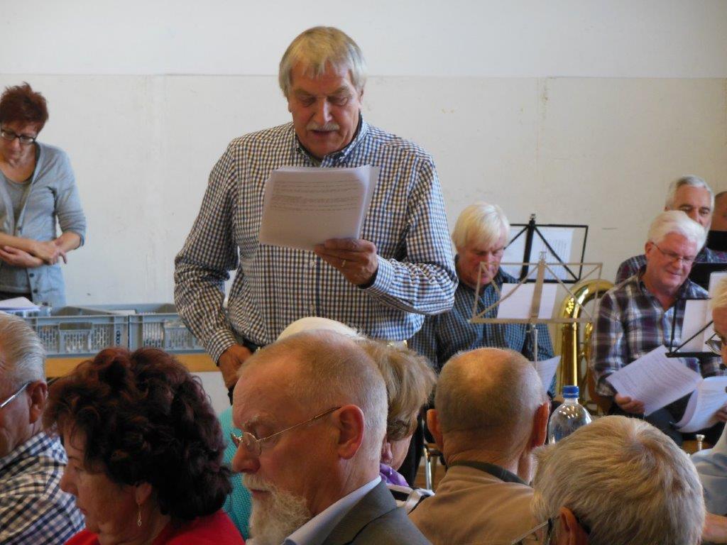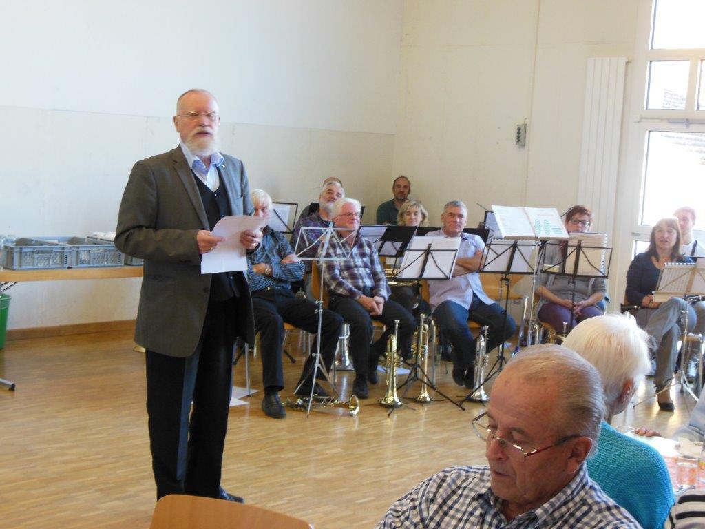 Um 14 h war es dann soweit. Präsident Paul Schlegel konnte eine erwartungsfrohe Teilnehmerschaft begrüssen und den Ablauf des Nachmittags kundtun. Unter der Leitung von Heinz Dürr spielte die MGO alsdann flott die ersten Musikstücke.