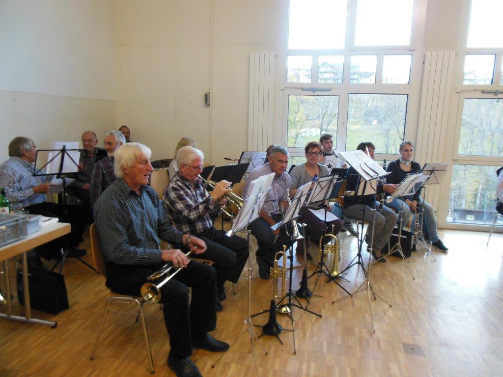 Üben heisst hauptsächlich Üben zu Hause. Bald können Übungsgruppen gebildet werden und einfache Stücke zusammen geprobt werden. Das ist natürlich sehr motivierend. In dieser Phase könnten auch wir Aktiven uns engagieren, in dem wir nach Bedarf in solchen Übungsgruppen mitspielen würden. Bald einmal würde sicher auch der Zeitpunkt kommen, wo Du in der Musikgesellschaft eine einfachere Stimme spielen und am Vereinsleben teilnehmen könntest.